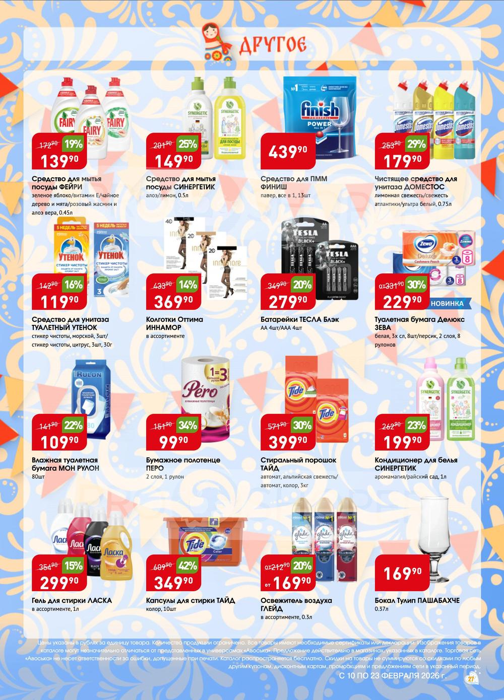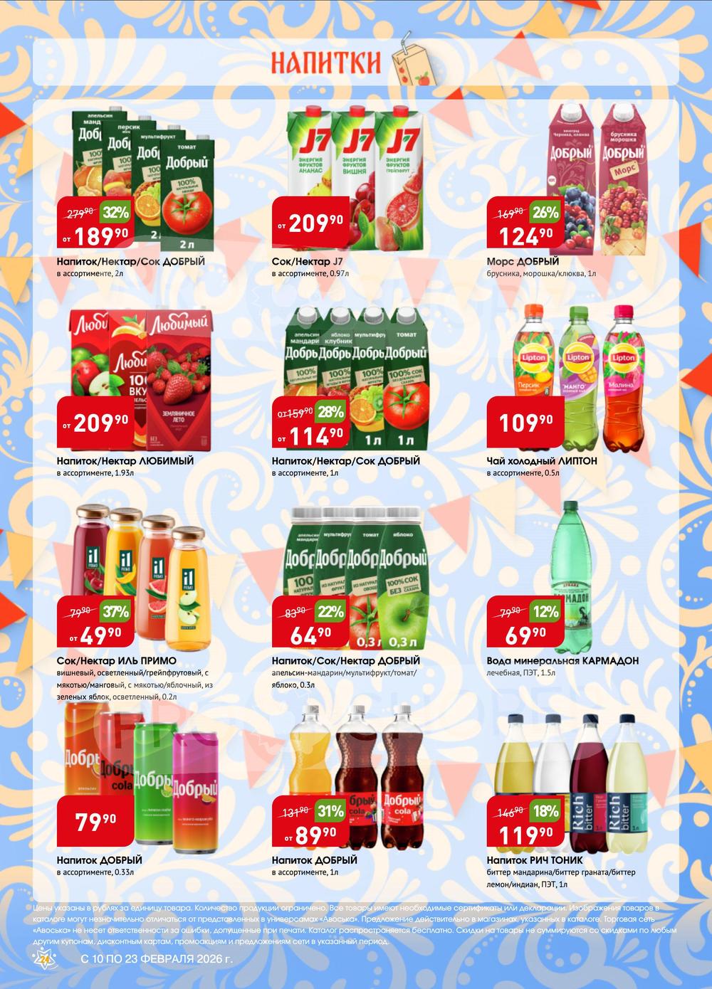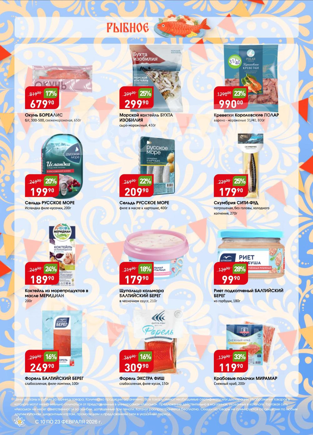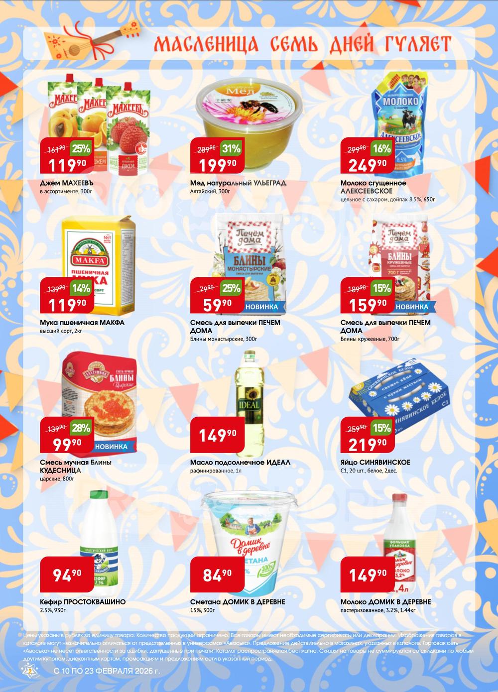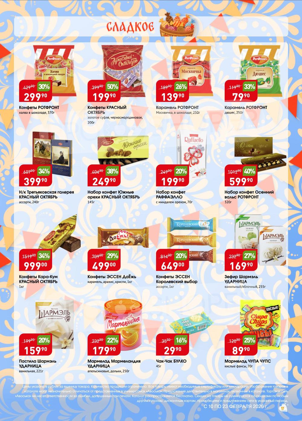 Сеть универсамов «Авоська» работает только с проверенными поставщиками и производителями, имеющими положительную деловую репутацию, что обеспечивает стабильное, высокое качество продукции, а также доступные цены. Экономьте еще больше покупая продукцию по акции из каталога товаров универсама «Авоська»!